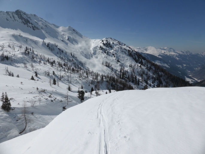 © Manfred Karl Wie auf dem Foto gut ersichtlich sind die zu querenden Hänge am Weg zur Kreealm nicht ganz ungefährlich