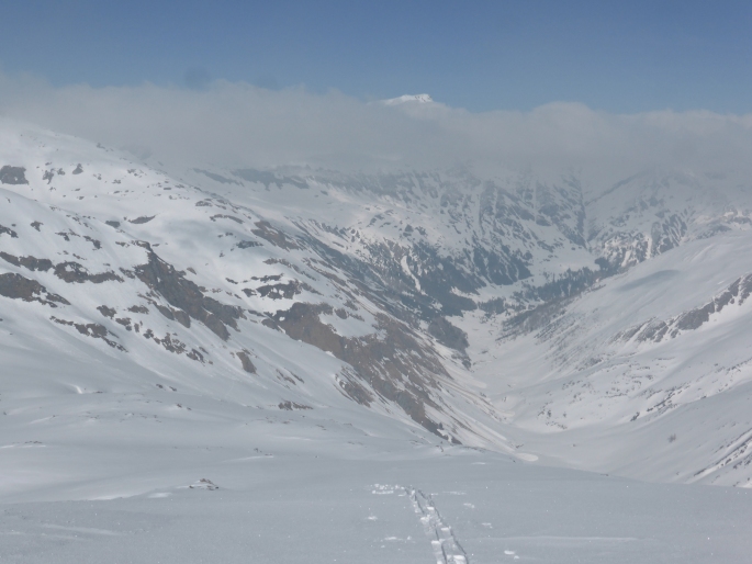 © Manfred Karl Blick vom Haseck auf die schöne Mulde unterhalb der Murwand mit dem Murtörl, das Mureck selbst steckt im Nebel