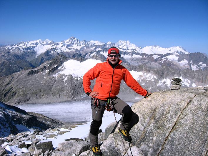 © Andreas Koller Am Ausstieg vom SO-Sporn mit Rhonegletscher und Berner Alpen